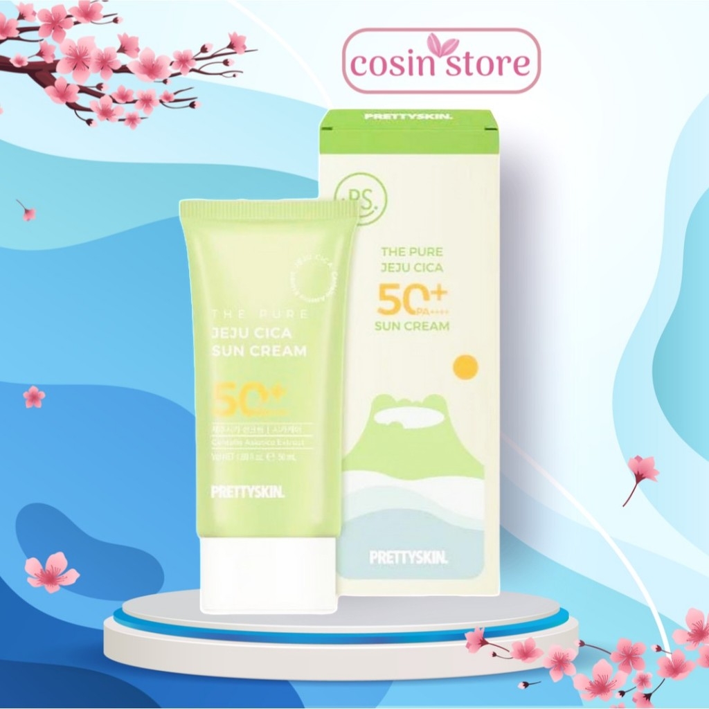 Thương hiệu Pretty Skin đang làm mưa làm gió tại Hàn Quốc. Sản phẩm kem chống nắng chiết xuất rau má có chỉ số chống nắng cao SPF 50+, PA++++ giúp chống nắng cao lên đến 8 tiếng. Nó cũng bảo vệ da khỏi tia UVA, UVB, tia hồng ngoại và ánh sáng xanh.
