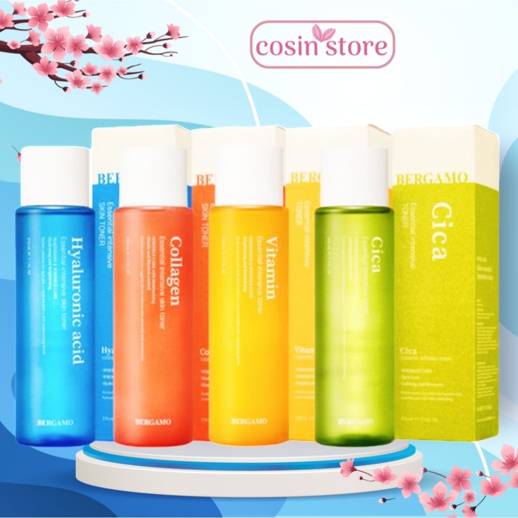 Bergamo Essential Intensive Toner là sản phẩm nước hoa hồng dưỡng da đến từ thương hiệu Bergamo Hàn Quốc, giúp cấp ẩm sâu, dưỡng da sáng mịn và se khít lỗ chân lông.
